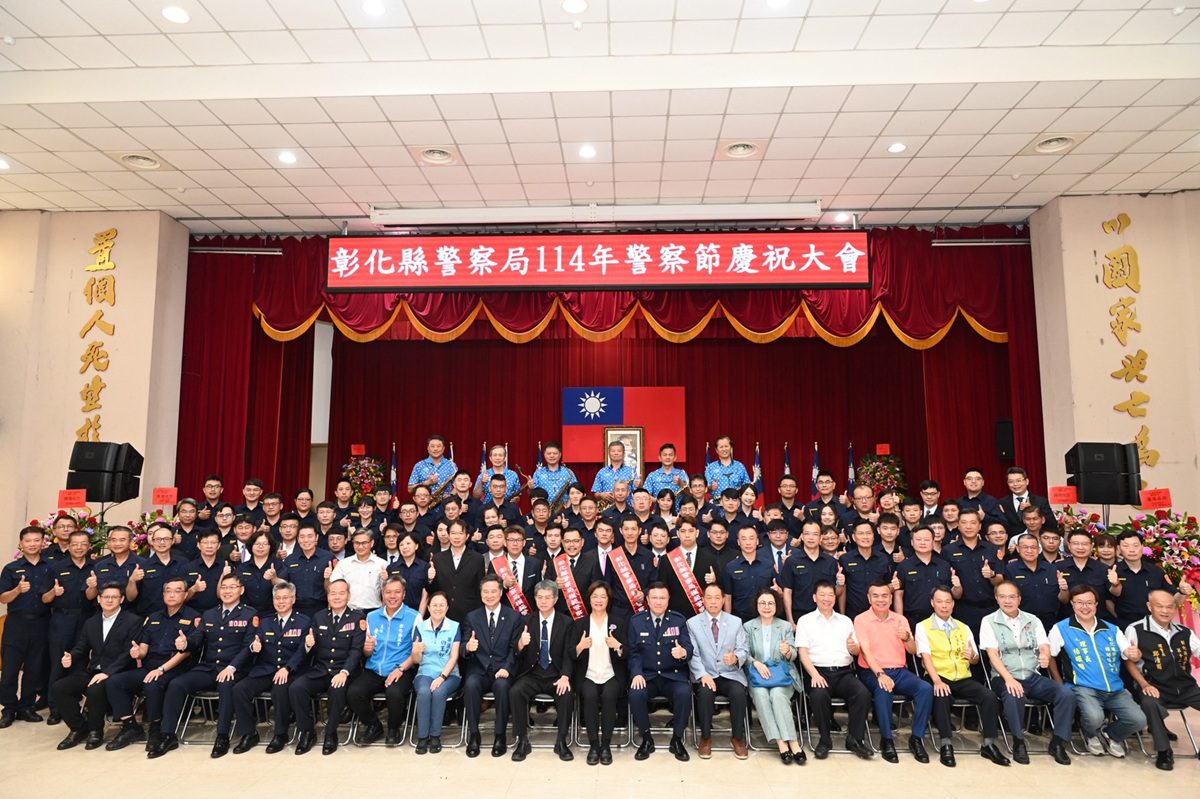 彰化縣警察局於今(9)日上午在該局大禮堂舉辦114年警察節慶祝大會,縣長王惠美提前祝賀6月15日警察節快樂。王縣長表示,6月15日是一年一度的警察節,向所有的警察同仁們,致上最高的敬意與謝意,謝謝他們在工作崗位上的堅持,讓我們有更好的治安與交通,且表揚63位績優警察同仁,包括「模範警察」、「績優刑事警察人員」、「績優交通警察人員」及「績優人員」,您們的付出與專業,是守護縣民安全最堅實的後盾!