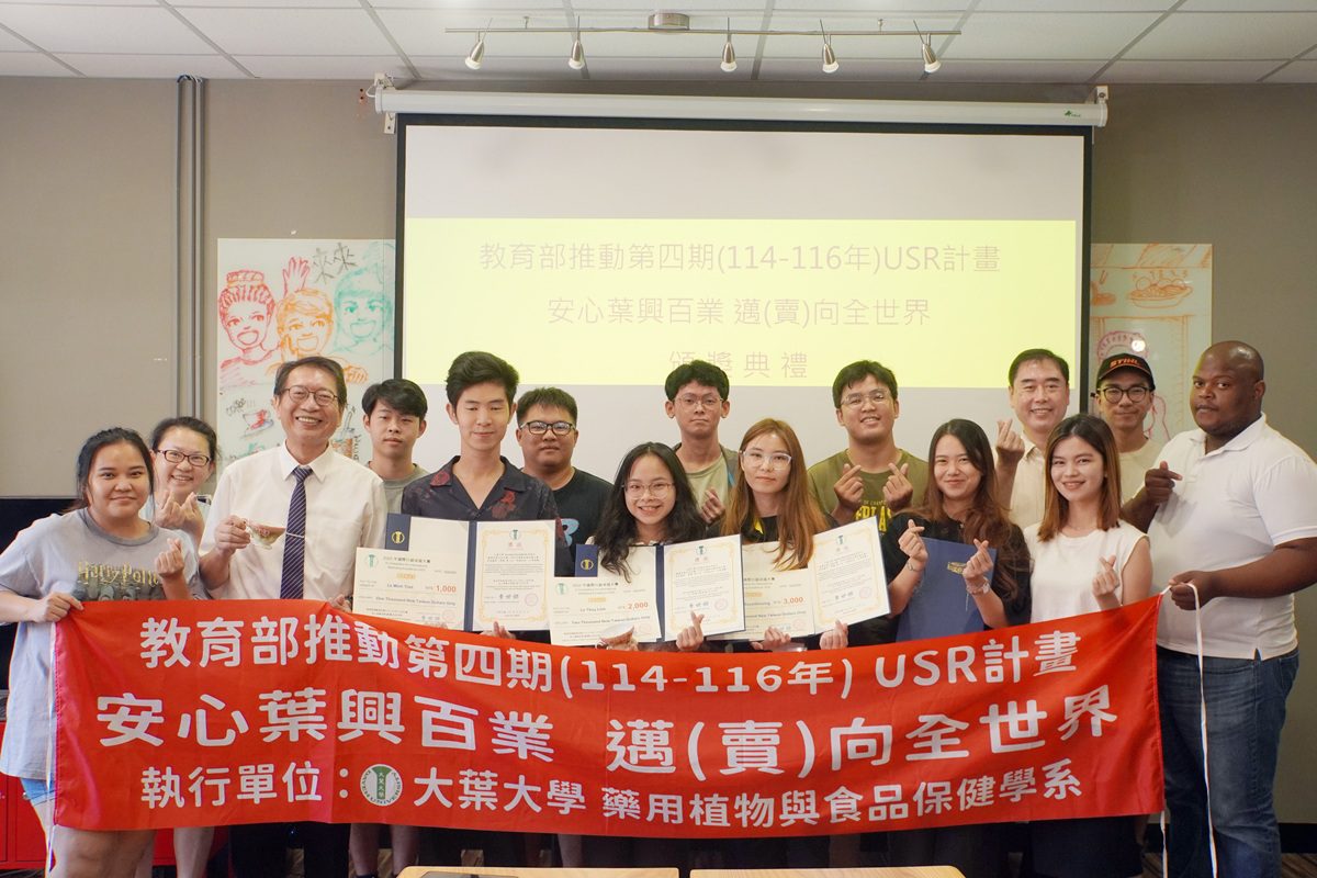 大葉大學USR計畫「安心葉興百業 邁(賣)向全世界」辦理「臺灣好茶全球通:2025國際行銷卓越大賽」,鼓勵學生提出創新且具執行力的國際行銷策略,助力台灣茶產業進軍全球市場,10月1日頒獎,蒙古學生Batdorj Buyankhishig榮獲冠軍,越南學生Le Thuy Linh獲頒亞軍。