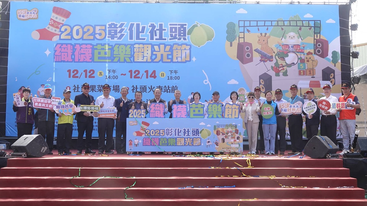 「2025彰化社頭織襪芭樂觀光節暨社頭農遊季」今日上午於社頭果菜市場盛大開幕,12月12至14日在活動現場有全國最大的織襪精品、農特產品展售、地方小吃、演唱會及煙火秀等精彩活動,還有芭樂創意料理免費品嚐、摸彩、打卡送好禮、發票換襪子、織足藏樂館促銷等好康活動,邀請全國鄉親安排假期暢遊社頭,購買社頭優質芭樂及好襪。
