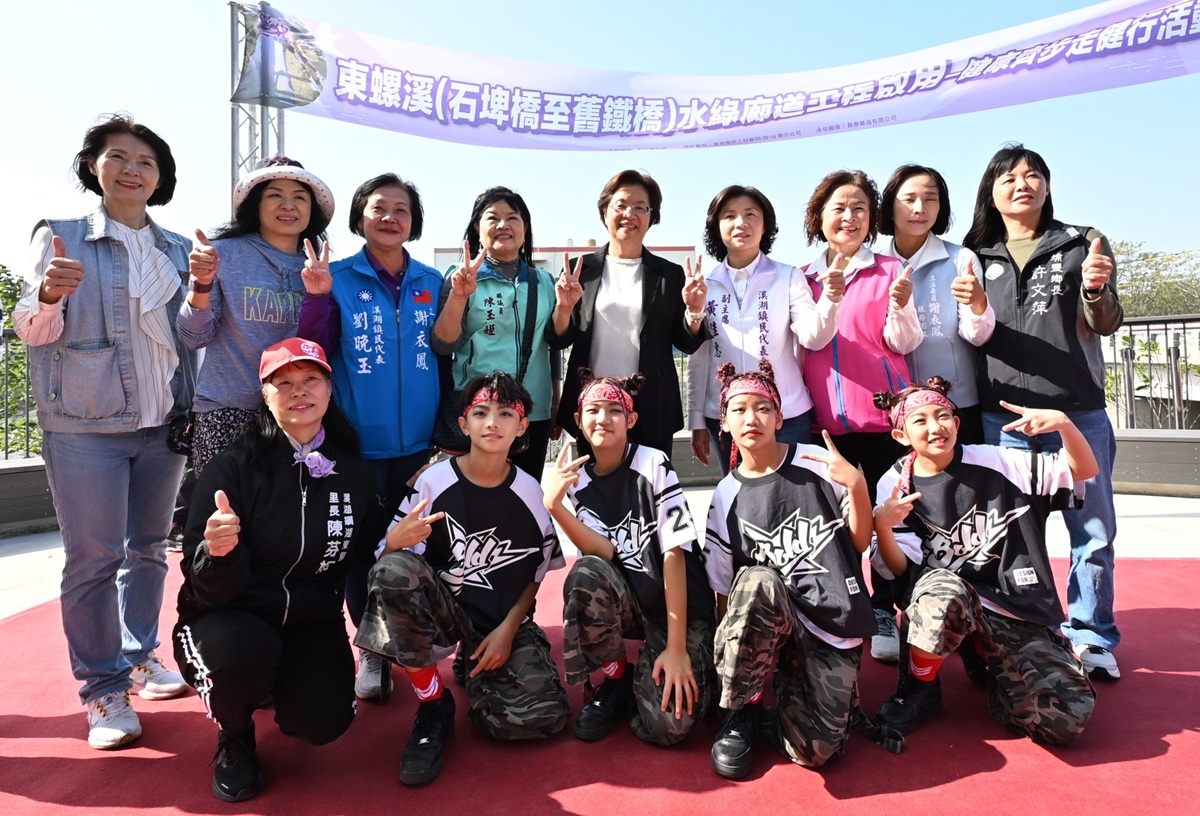 王惠美指出,東螺溪水綠廊道是縣府與地方接觸最多的合作,除了感謝立委謝衣鳯在中央大力爭取經費外,也感謝湖埔社區大學、NGO組織及地方居民的齊力協助,透過車流動線改道創造步行廣場空間,讓鄉親來此健行不用與車子爭道,可以放心悠閒觀景並享受大自然氛圍。今天的健行活動來回程約4.2公里,民眾可沿著廊道完成闖關任務集章後兑換小禮物,親身欣賞沿途美景及復古造景,藉此更認識這條屬於彰化的母親之河,也能體會縣府團隊多年來的用心。