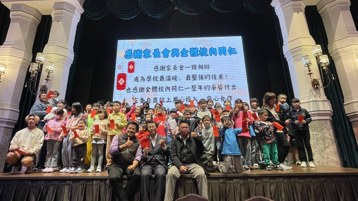 每年餐會最令人期待的重頭戲,莫過於楊豪森校長親自準備的新年紅包。當晚特別安排「人人有獎」,不論是學生或小朋友,都能收到祝福紅包,溫暖畫面令人動容。今年紅包數量再創新高,共發出81包,象徵員林高中大家庭一年比一年更加壯大,也展現校長對師生與家庭滿滿的關懷。在歡樂的大合影時刻,楊豪森校長帶領全場齊聲高喊:「長大要讀員林高中!」孩子們宏亮的口號響徹會場,引來熱情的笑聲與掌聲,不僅趣味十足,更展現學校對辦學品質的自信與對未來學子的熱情邀請。