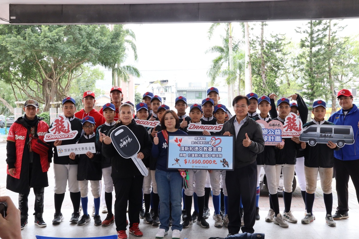 花蓮是孕育台灣職棒球員的重要搖籃,培養出無數屬於台灣的榮耀,2025 年 9 月發生的堰塞湖溢流災情,光復鄉深陷泥流危機,光復國中校園更是一片狼藉,球場及球具幾乎全毀,曾陪伴球員們追逐夢想的「接棒未來」棒球交通車也在災情中嚴重受損。頂新和德文教基金發動愛心接力,整合集團、公益夥伴與社會大眾力量,共募集155 萬元,於2026年1月邀請味全龍投手吳俊杰和外野手曾聖安一同將愛心送達光復。