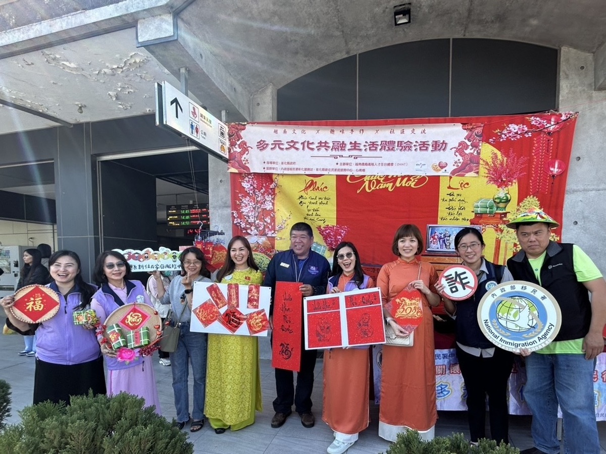 農曆春節將至,移民署彰化縣服務站、彰化縣政府與越南僑裔高階人才在臺總會在彰化火車站前舉辦「馬上好運,多元文化體驗活動」,結合越南傳承百年的年畫藝術與網印技術,邀請返鄉旅客與在地民眾親手「刷」出獨一無二的年畫及紅包袋,為車站廊道,增添一份閃耀喜氣的金色驚喜。