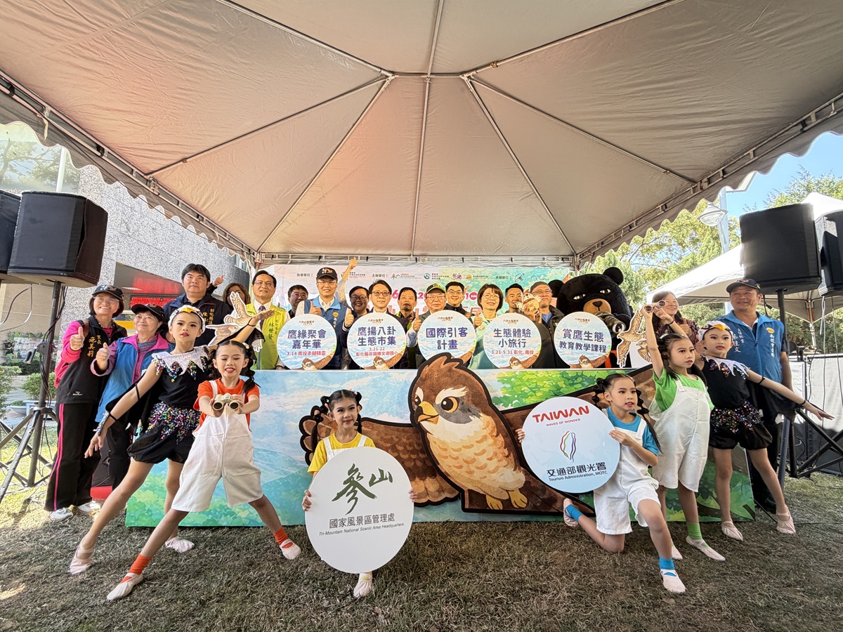 參山處指出,與南投合辦「鷹緣聚會嘉年華」率先登場,將於3月14日(六)在南投橫山賞鷹平台旁的赤腳精靈舉行,當天將安排永興社區陣鼓隊、氣球互動秀、在地小農文創市集及窯烤麵包等美食試吃;現場更推出限量「賞鷹望遠鏡」與「圖鷹紙著色」DIY活動,參與闖關或填寫問卷還有機會獲得50元市集抵用券,是親子週末出遊的最佳選擇。
